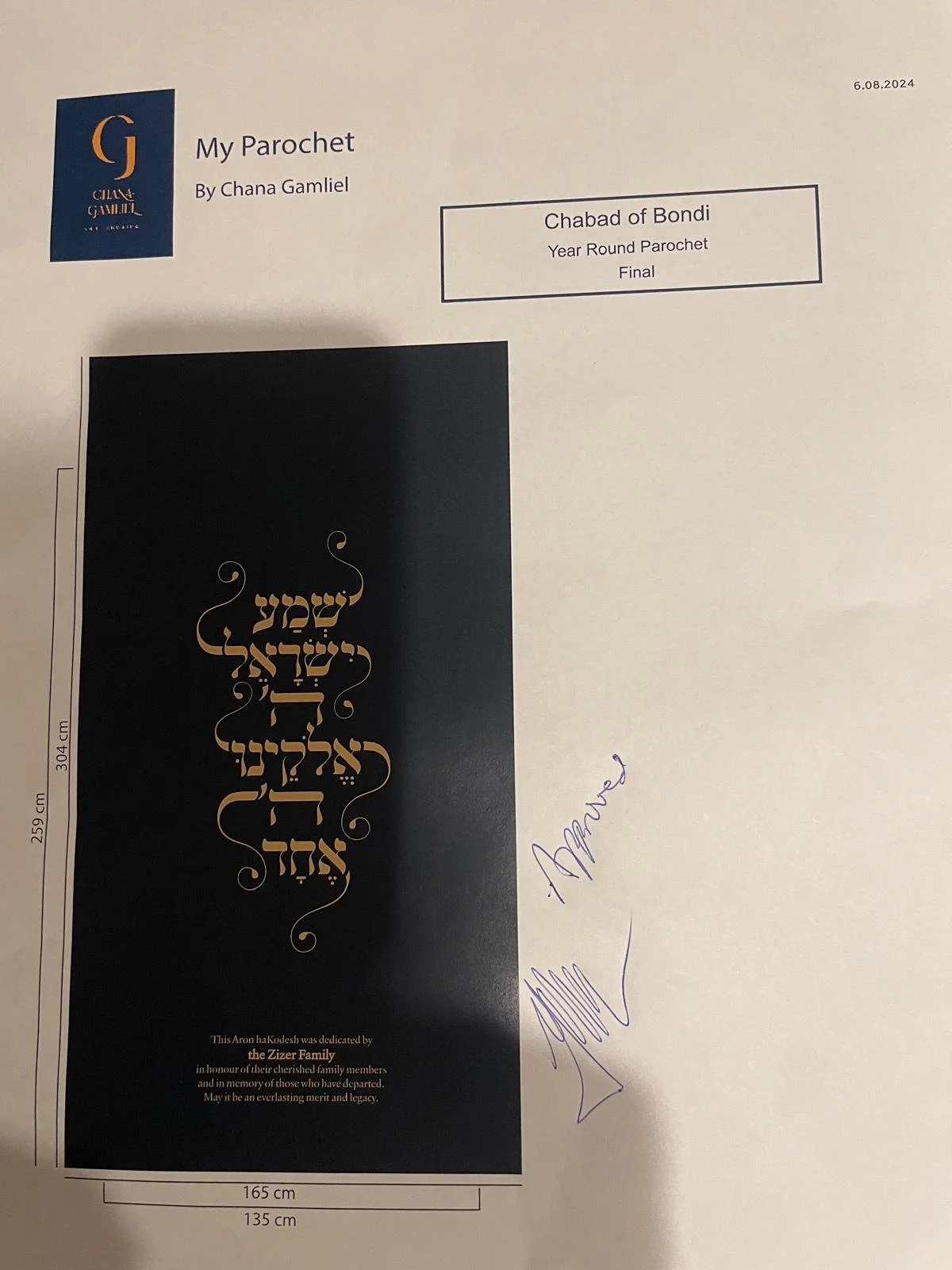 Recently, I got an email from someone in Sydney who had been to Chabad of Bondi. She said she saw the parochet and sent me a photo of her friend’s kids taking photos right in front of it. How cute is that????