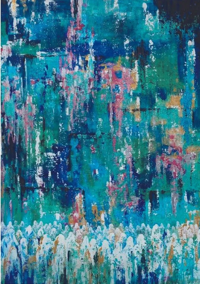 Menucha Yankelevitch’s original painting: Standing at the Kotel in Turquoise