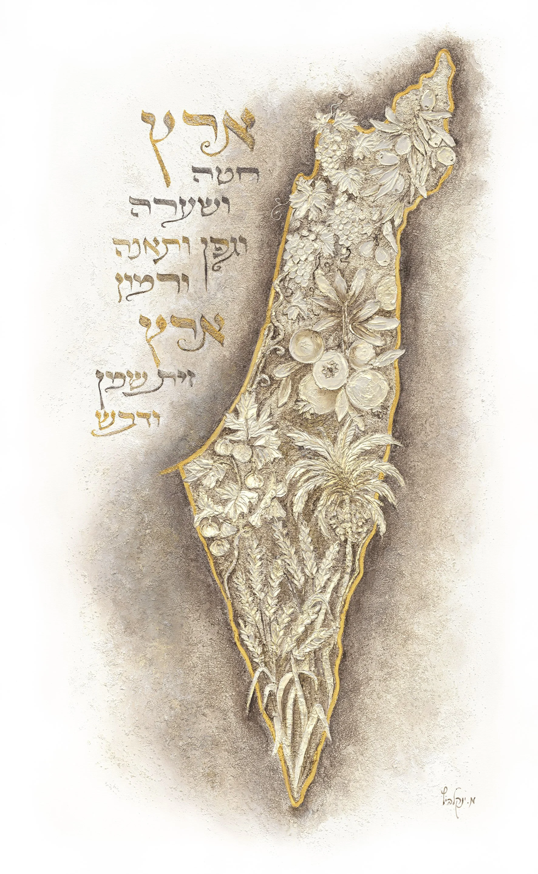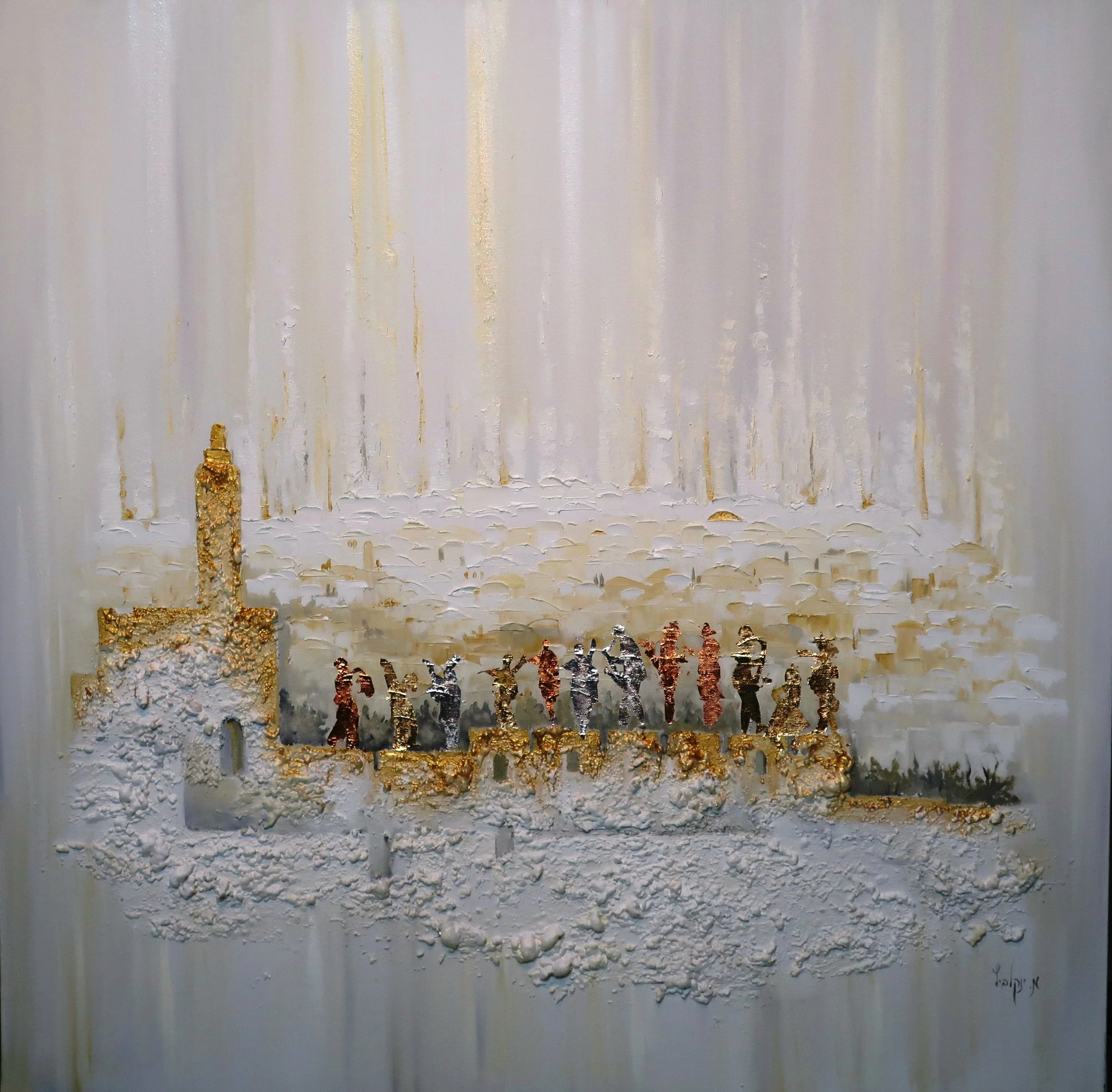 There was a period when I experimented with very delicate figures against white backgrounds, with bold patches of oil paint for contrast. I loved the freshness of that look, but I kept asking myself: how can I bring this style into Judaica?